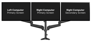 In case you have more than one screen per computer, you will need to keep your left and right screens as primary, and all secondaries should go in the direction of the computer side.